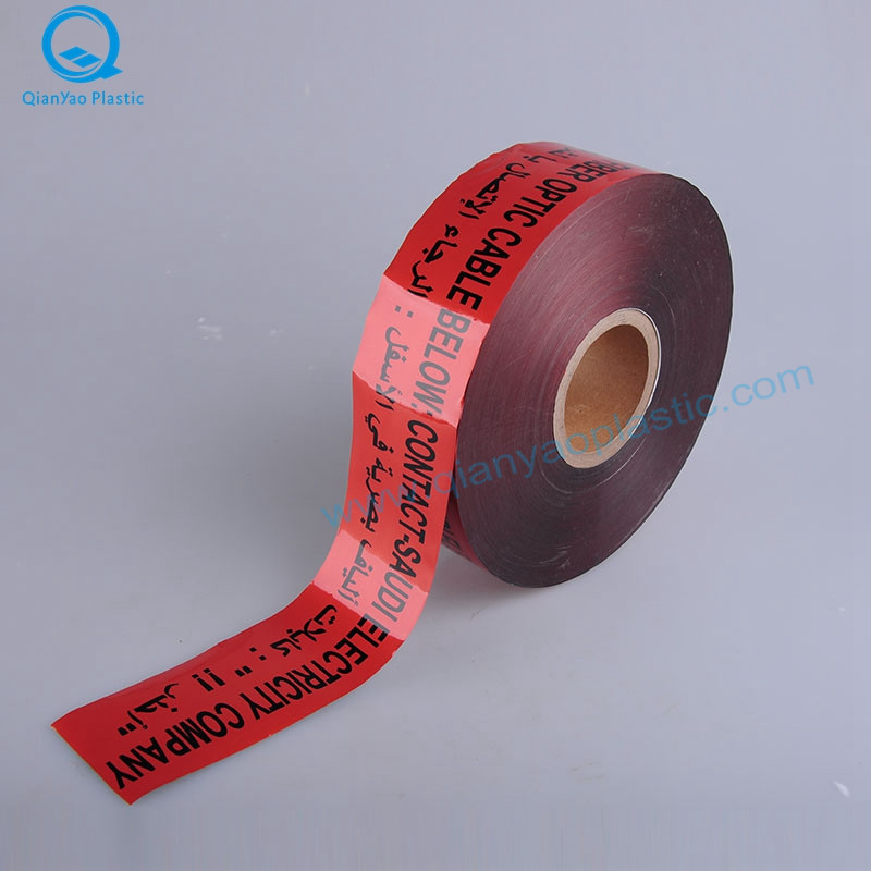 Saúdská Arábie NEBEZPEČÍ / POZOR Varovná páska podzemního telekomunikačního kabelu; Kabel z optických vláken pod výstražnou páskou